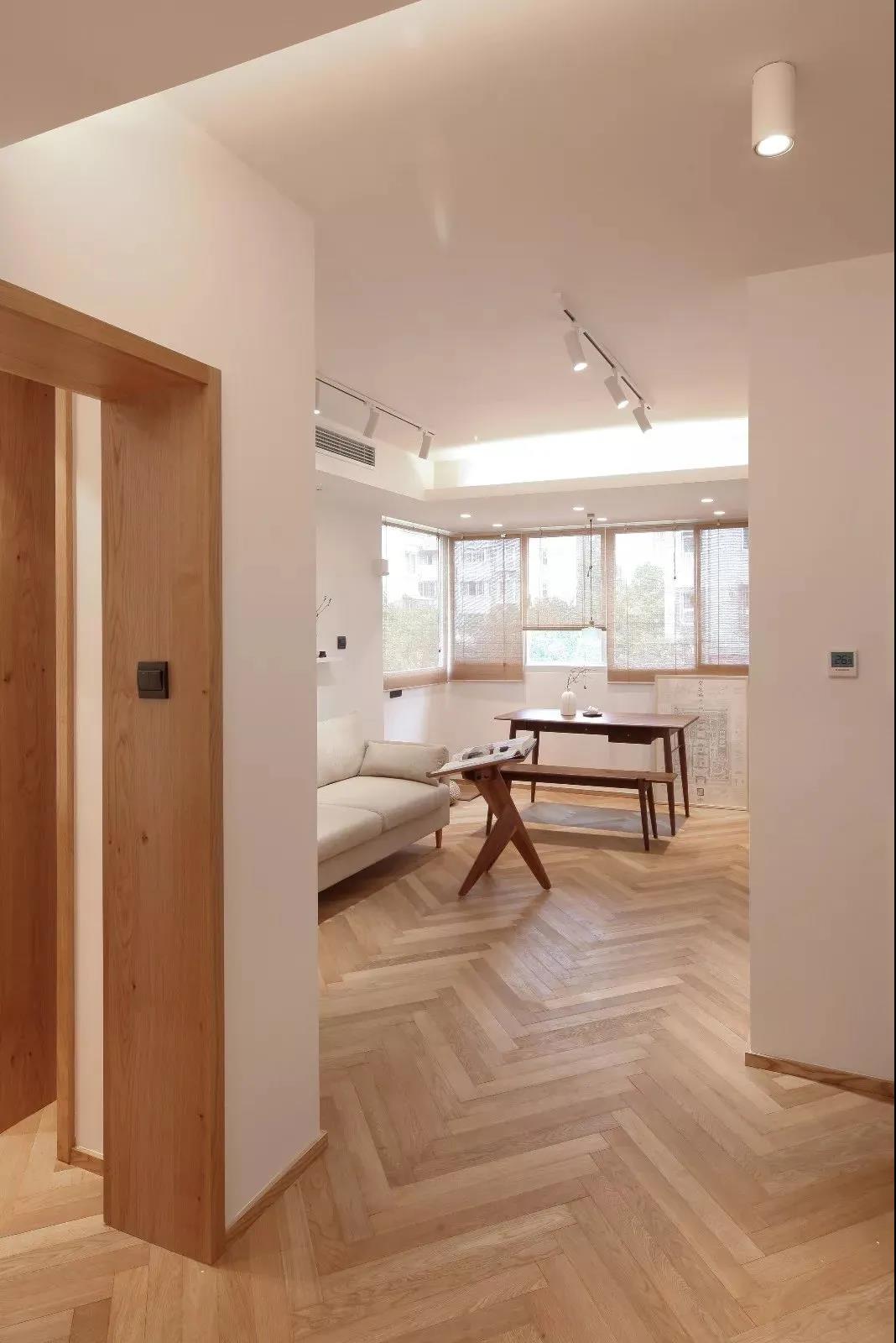 一進門就是各個空間的交匯處,沒有獨立的玄關,視線瞬間開闊,也很好的減少了占地面積。
