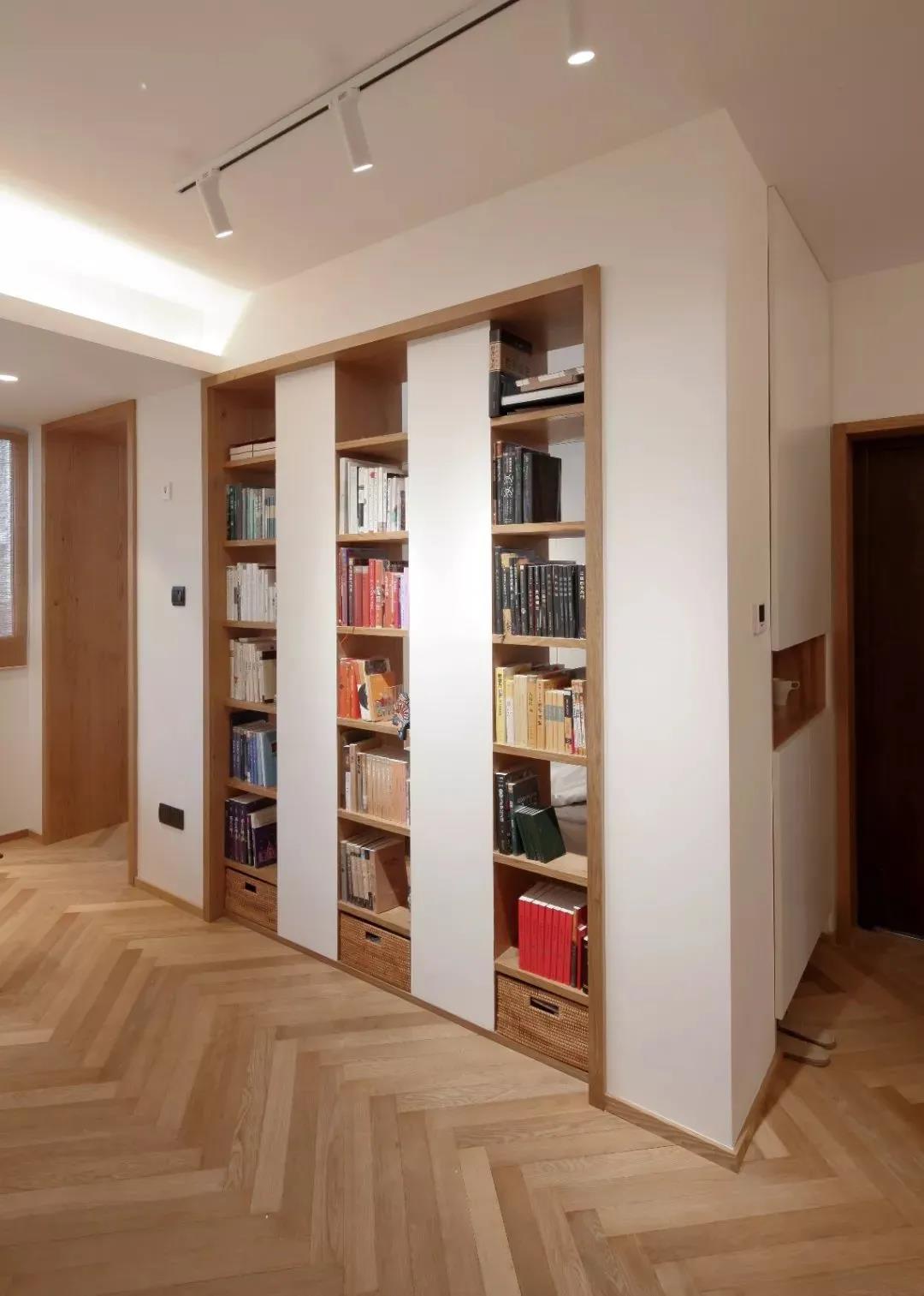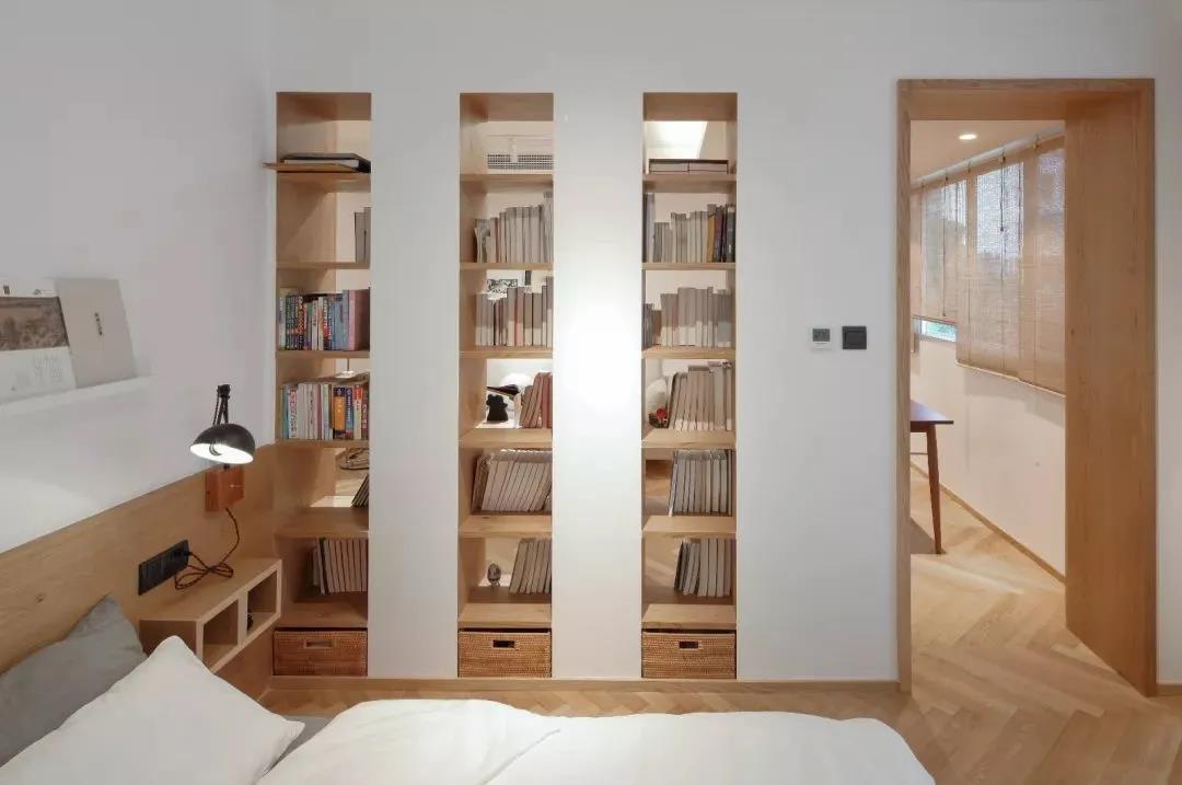 這面臥室與客廳之間的墻被打造成了一面書架,可以放上一些喜歡的書