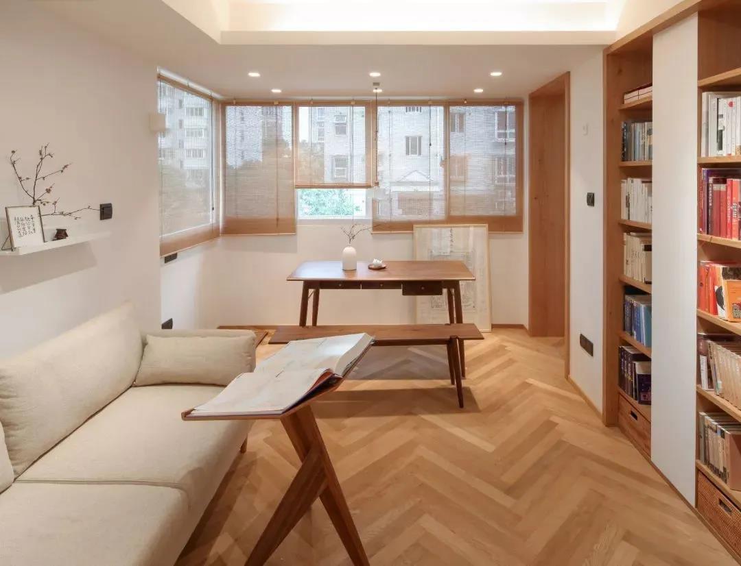 進門的右手邊是個活動區(qū)域,這里包含了客廳、書房等區(qū)域