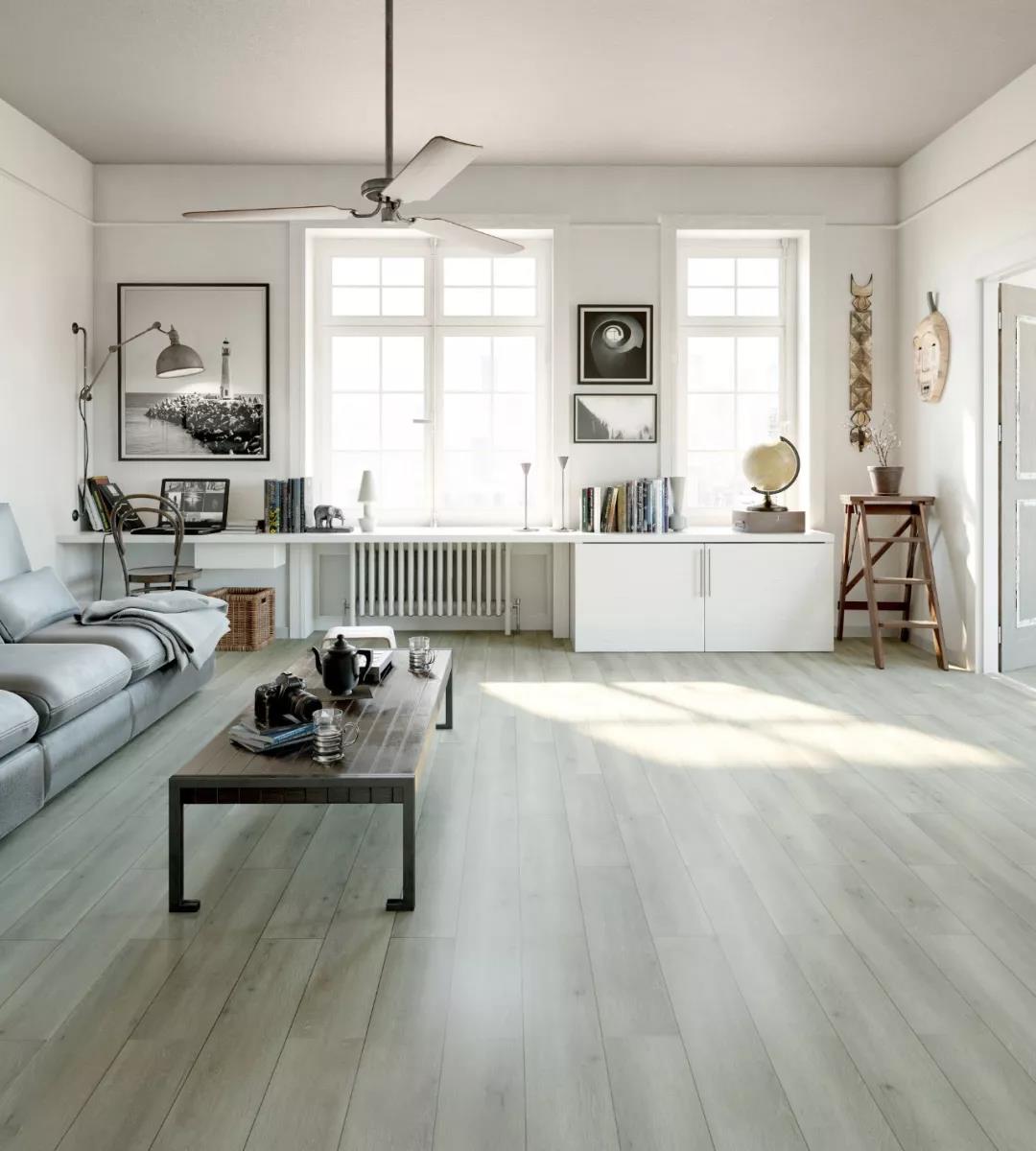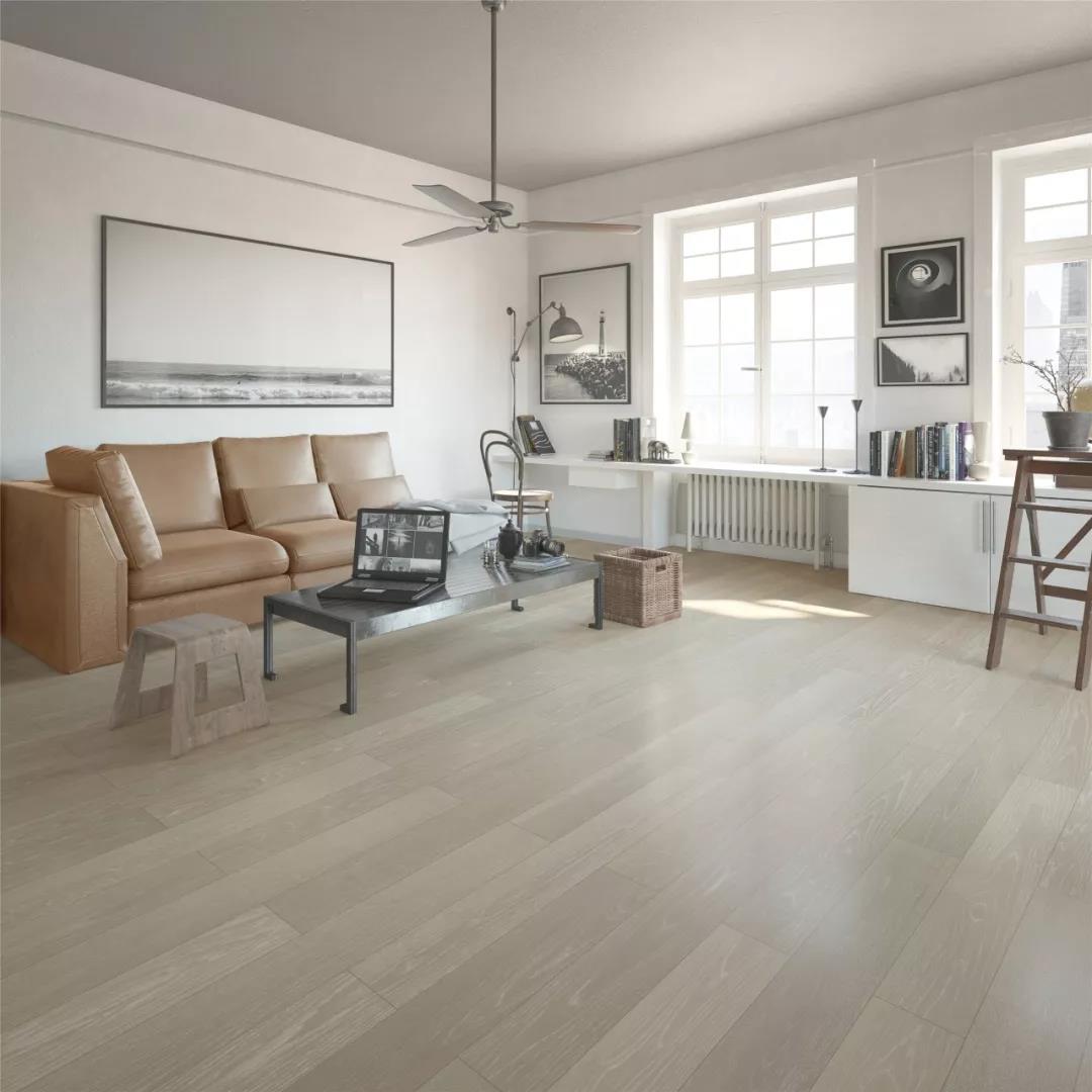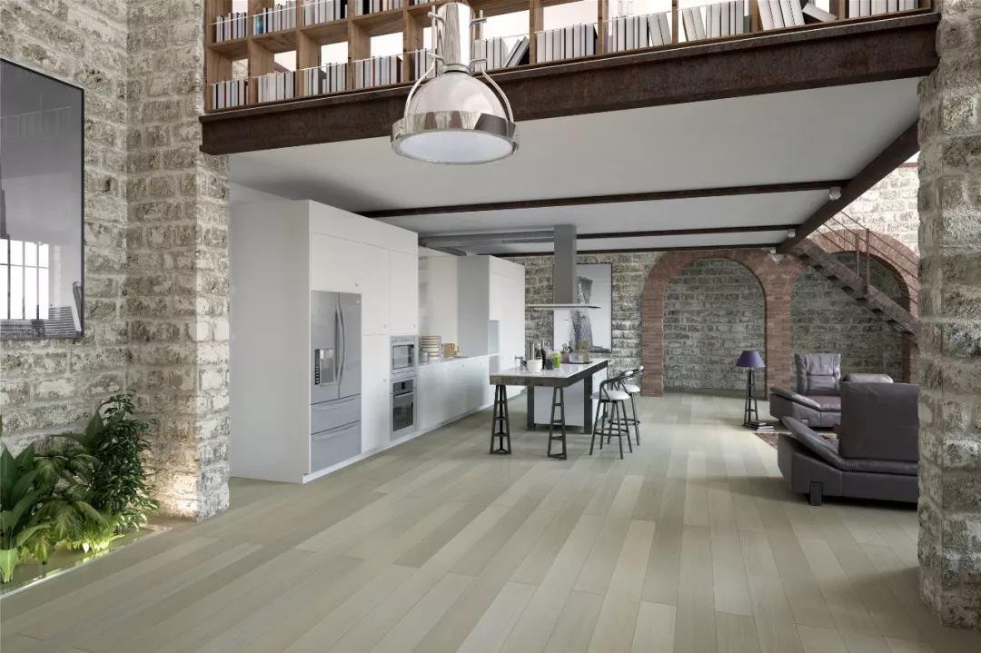 相反的,淺色地板則在視覺(jué)上就有擴(kuò)張的效果,不僅能在一定程度上模糊地板與墻面之間的界限,有效放大空間,也能讓空間看起來(lái)更加簡(jiǎn)潔清爽,提升采光度和通透感,大大提升居住的幸福感。