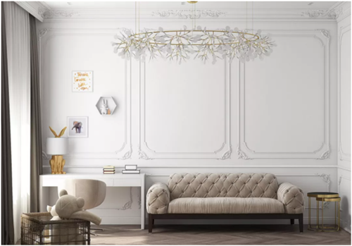 2、如果家庭裝修是古典、輕奢風(fēng)格的,踢腳線可以搭配石膏線。