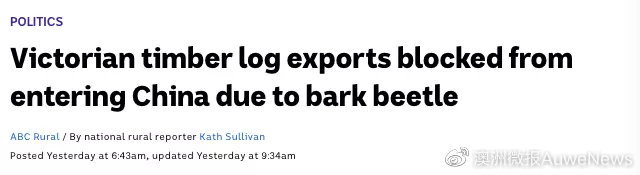 因?yàn)榻衲暧?2批來(lái)自維州的貨物中被中國(guó)海關(guān)發(fā)現(xiàn)存在樹皮甲蟲(bark beetle),樹皮甲蟲通常選擇死亡或腐爛的樹木作為繁殖地,如果甲蟲數(shù)量失控,整個(gè)森林都會(huì)遭受破壞