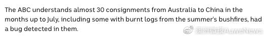 此外ABC還表示今年截至7月,從澳大利亞運(yùn)往中國(guó)的近30批貨物里發(fā)現(xiàn)了樹皮甲蟲。