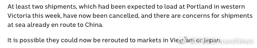 據(jù)ABC報(bào)道稱原本維州本周至少還有兩批貨需運(yùn)往中國(guó),但現(xiàn)在已被取消,此外,已經(jīng)在路上的原木去向也令人擔(dān)憂,報(bào)道分析它們可能會(huì)被安排改道前往越南或日本。