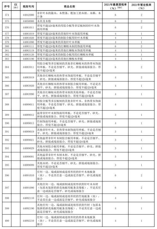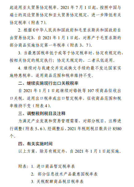 附件:2021年關(guān)稅調(diào)整方案