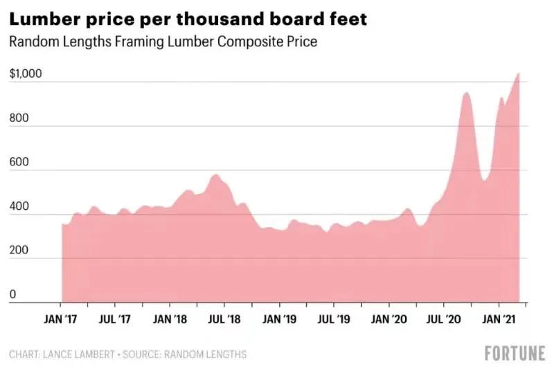 據(jù)美國《財富》雜志網(wǎng)站20日報道,由疫情引發(fā)的木材短缺情況并未結(jié)束。根據(jù)全球木材產(chǎn)業(yè)調(diào)研機(jī)構(gòu)Random Lengths的數(shù)據(jù),自新冠肺炎疫情暴發(fā)以來,全球木材價格上升了188%。截至今年3月11日當(dāng)周,每千板英尺(北美木材計量單位)的木材價格為1044美元(相當(dāng)于每立方米442美元、約合人民幣2876元),創(chuàng)歷史最高水平。