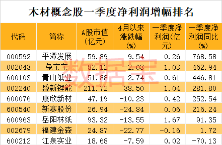 市值最高的盛新鋰能達(dá)到212億元,公司主業(yè)除了人造板和林木外,還有鋰鹽業(yè)務(wù),子公司遂寧盛新設(shè)計(jì)產(chǎn)能為年產(chǎn)3萬噸鋰鹽,首期年產(chǎn)2萬噸氫氧化鋰項(xiàng)目已于2020年末開工建設(shè)。從業(yè)績數(shù)據(jù)來看,今年一季度木材概念股中有8只凈利潤翻倍增長,分別是平潭發(fā)展、兔寶寶、青山紙業(yè)、盛新鋰能、康欣新材等。平潭發(fā)展一季度實(shí)現(xiàn)盈利0.26億元,同比增長768.58%,凈利潤增幅排在首位,主要是受益于報(bào)告期內(nèi)主營林木業(yè)務(wù)板塊生產(chǎn)銷售情況良好,貿(mào)易業(yè)務(wù)穩(wěn)步增長。