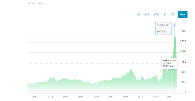 期貨市場的活動更加令人瞠目結(jié)舌。3 月份交貨的木材價(jià)格類似于比特幣或 GameStop 股票的價(jià)格圖表。