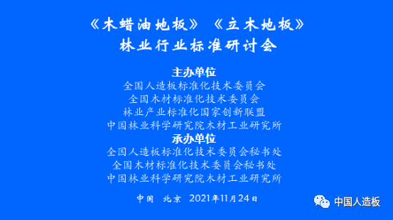 2021年11月24日下午,由全國(guó)人造板標(biāo)準(zhǔn)化技術(shù)委員會(huì)、全國(guó)木材標(biāo)準(zhǔn)化技術(shù)委員會(huì)、中國(guó)林科院木材工業(yè)研究所、林業(yè)產(chǎn)業(yè)標(biāo)準(zhǔn)化國(guó)家創(chuàng)新聯(lián)盟主辦的“《木蠟油地板》《立木地板》林業(yè)行業(yè)標(biāo)準(zhǔn)研討會(huì)”順利召開(kāi)。