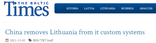 立陶宛國家廣播電視臺(tái)(LRT)等多家立媒和《波羅的海時(shí)報(bào)》2日消息稱,立陶宛出口商報(bào)告說,中國海關(guān)似乎已將立陶宛從其系統(tǒng)中移除,貨物無法在華清關(guān)。立陶宛外交部稱,正就此事與歐盟進(jìn)行聯(lián)系。