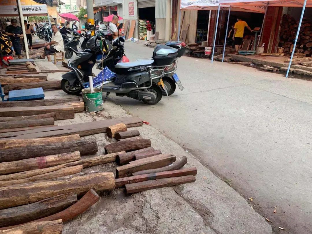在售賣大紅酸枝原材料的一條小街上,一位紅木廠老板說,“現(xiàn)在,只能一塊一塊的挑著買”。