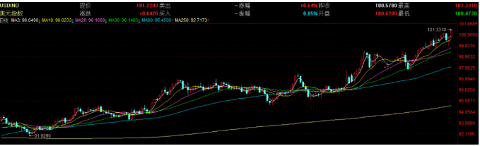 1、在美聯(lián)儲(chǔ)加息縮表的背景下,美元指數(shù)大漲,創(chuàng)下過(guò)去兩年來(lái)最高值101.03,美元漲人民幣跌也是在情理之中。