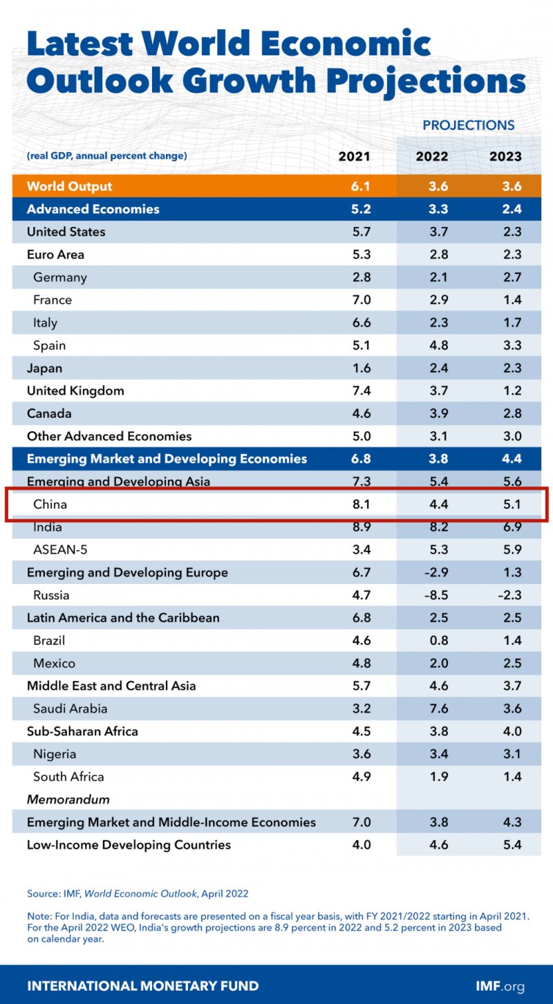 受?chē)?guó)內(nèi)疫情影響,國(guó)際貨幣基金組織周二將其對(duì)中國(guó)今年的增長(zhǎng)預(yù)測(cè)下調(diào)至 4.4%,遠(yuǎn)低于國(guó)內(nèi)設(shè)定的 5.5% 左右的目標(biāo),原因是疫情導(dǎo)致存在廣泛的封鎖和供應(yīng)鏈中斷的風(fēng)險(xiǎn)。