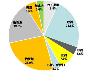 出口國家主要集中在德國、法國、意大利、瑞典、芬蘭、羅馬尼亞、拉脫維亞